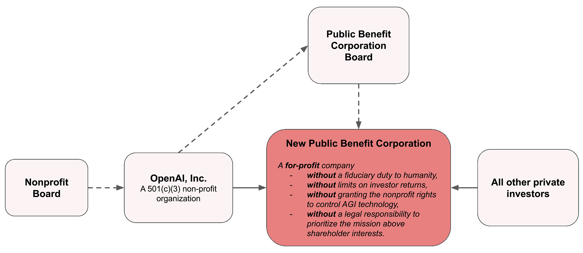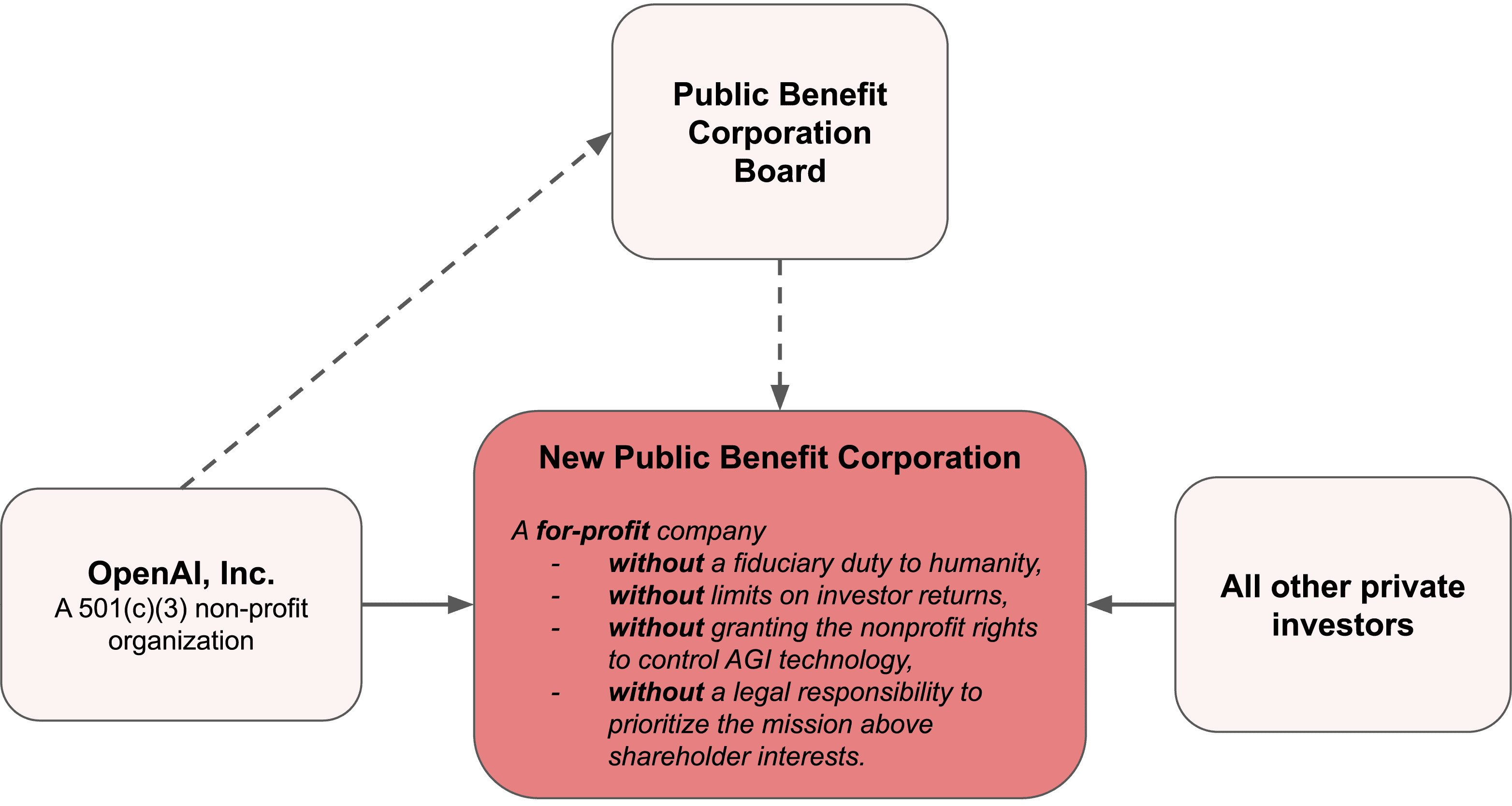Now, under investor pressure, OpenAI is attempting to remove those profit caps as they restructure into a public benefit corporation without a fiduciary duty to humanity. They will claim that the nonprofit is retaining control—and in some limited sense it is—but the truth is that their mission may still be sidelined.
